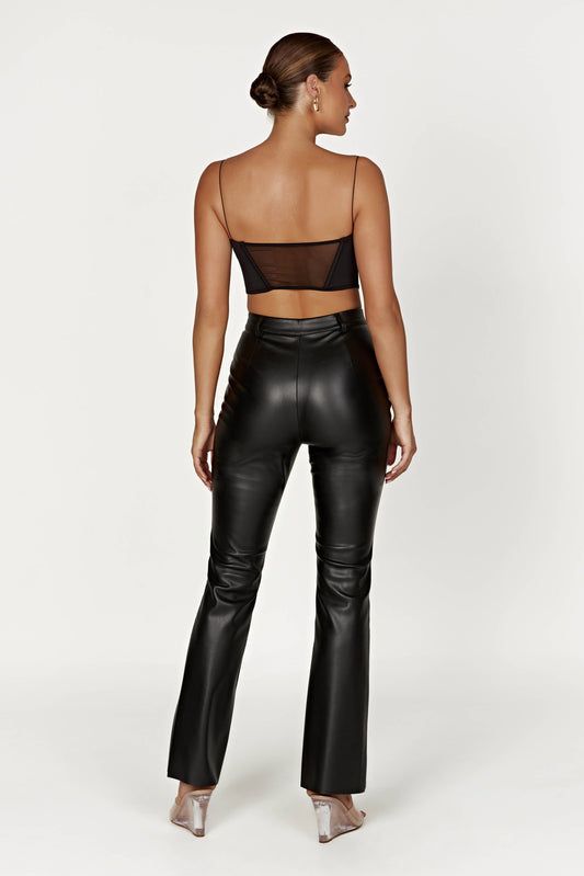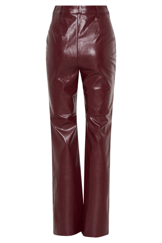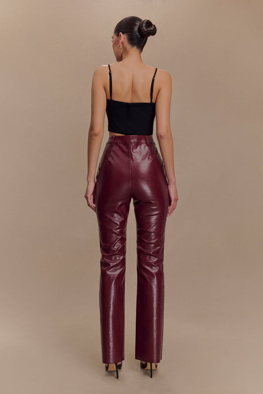 Theo Faux Leather Mid Rise Pants - Dark Chocolate