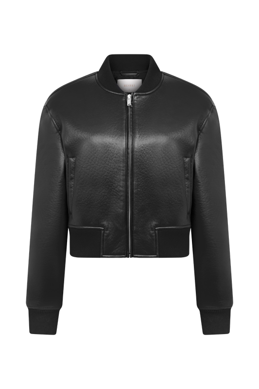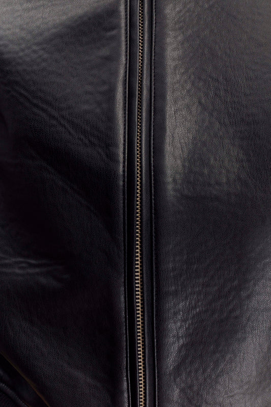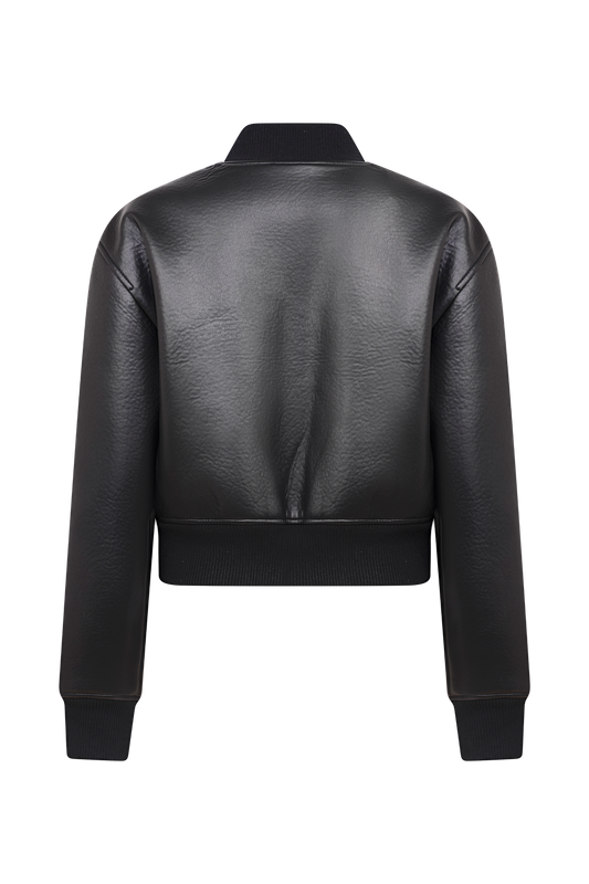 Faux Leather Bomber Jacket - Black