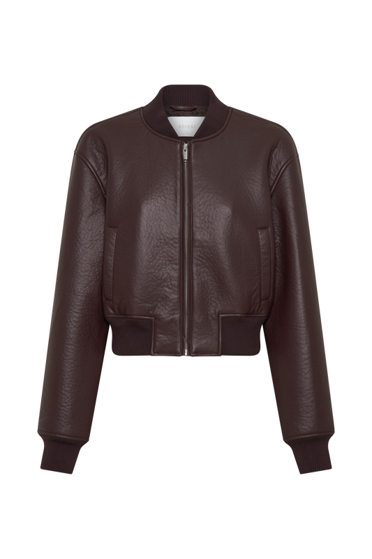 Faux Leather Bomber Jacket - Dark Chocolate
