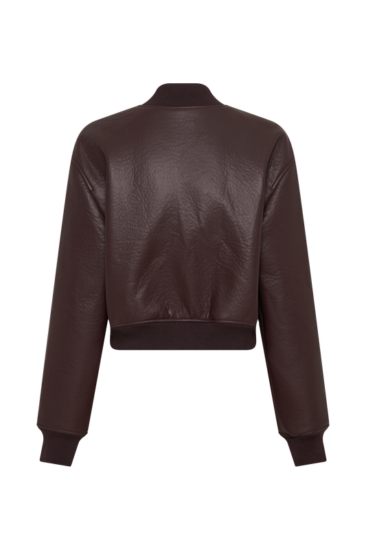 Curtis Faux Leather Bomber Jacket - Dark Chocolate