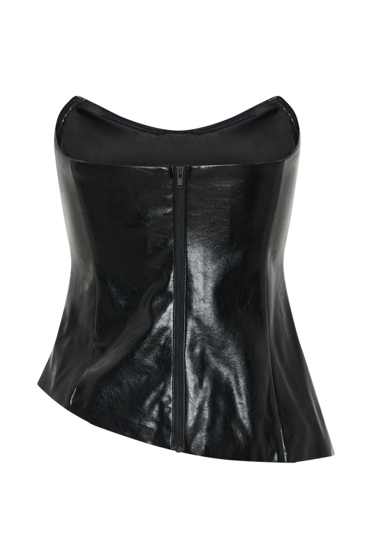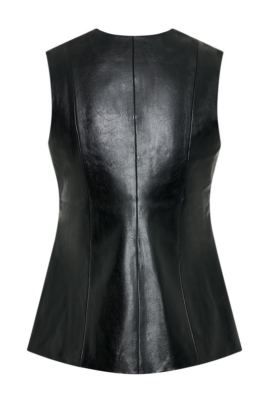 Coralia Faux Leather Sleeveless Vest - Black