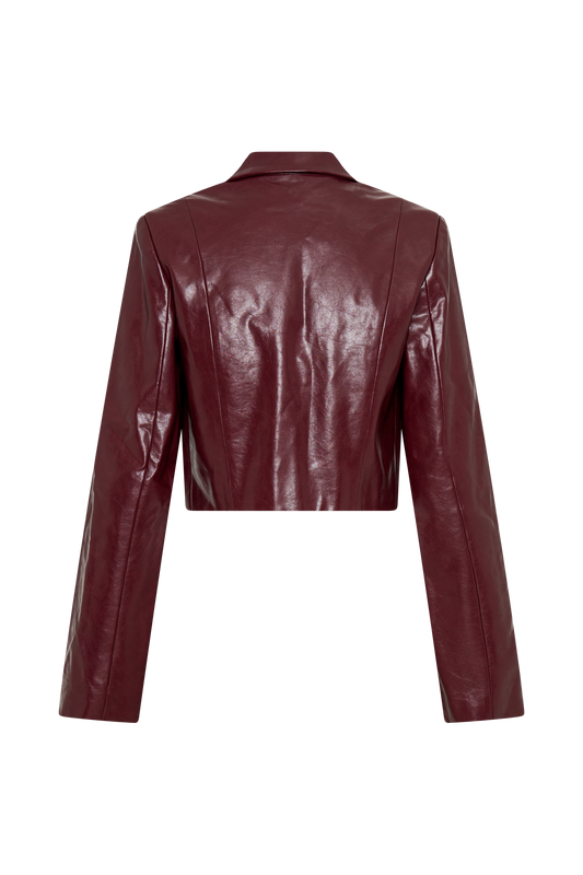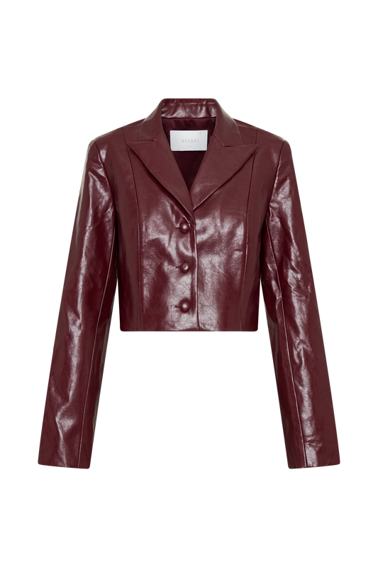 Archie Croc Faux Leather Cropped Jacket - Burgundy
