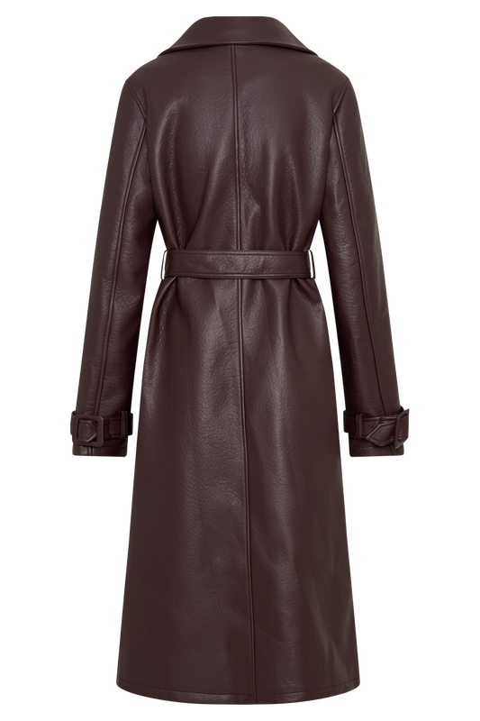 Tarah Faux Leather Trench Coat - Black