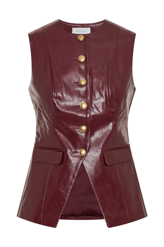 Regular price$149-50% Off Sale price $75Unit price / perCoralia Faux Leather Sleeveless Vest - Cherry Red