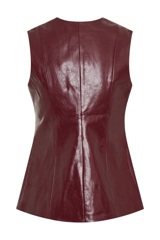 Coralia Faux Leather Sleeveless Vest - Cherry Red