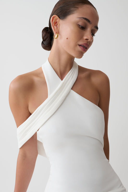 Aveline Draped Halter Midi Dress - Dark Chocolate