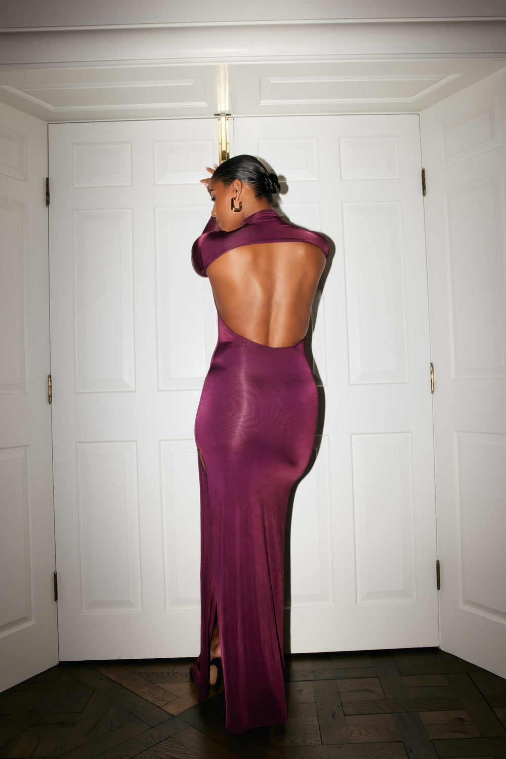 Slinky Long Sleeve Maxi Dress With Split - Ivory