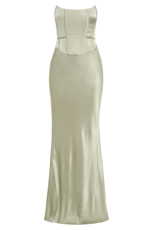Lilly Sweetheart Satin Maxi Dress - Sage