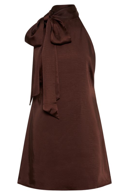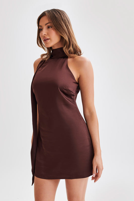 Aubriella Halter Mini Dress With Tie - Dark Chocolate