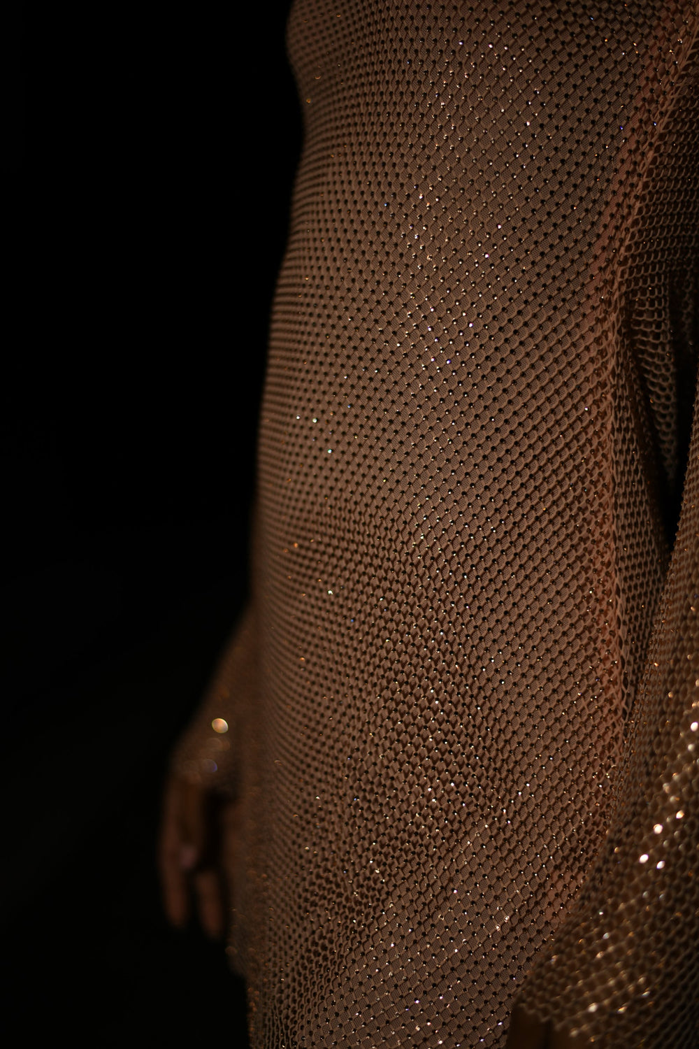 Hot Fix Maxi Dress With Mesh Back - Nude