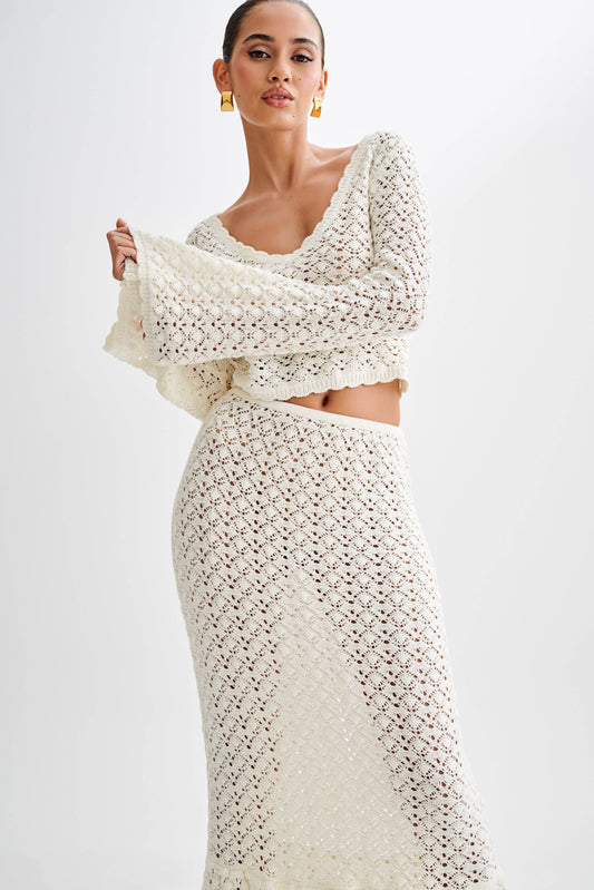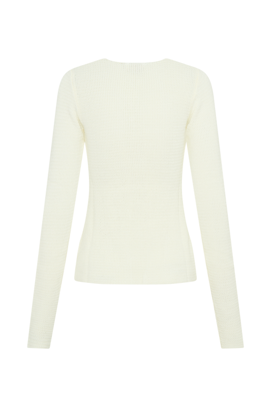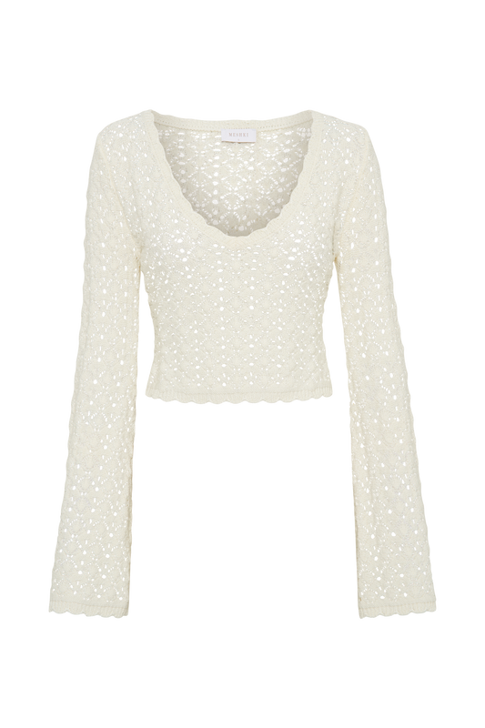 Omari Embroidery Long Sleeve Knit Top - Ivory