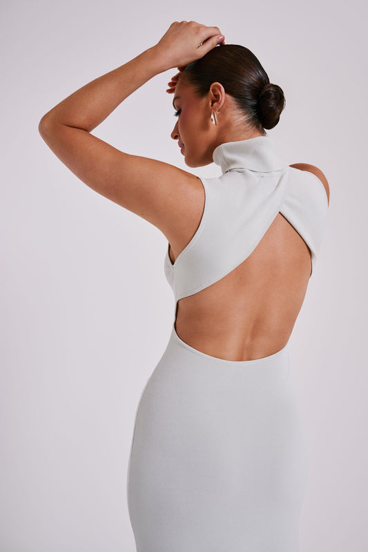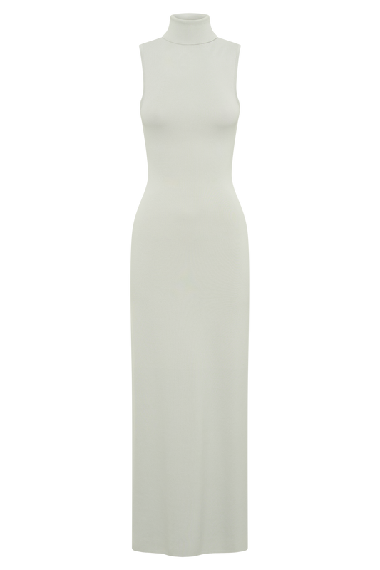 Louisa High Neck Knit Maxi Dress - Ice Grey