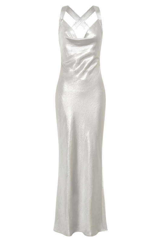 Satin Cowl Maxi Dress - Silver