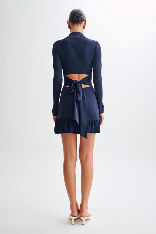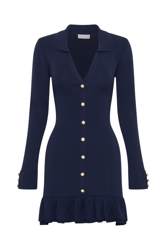 Abbey Buttoned Knit Midi Dress - Navy