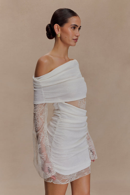 Dominique Off Shoulder Long Sleeve Mini Dress - Ivory