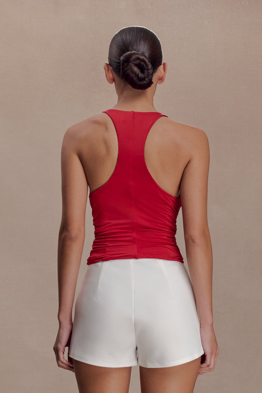 Regular price $139Unit price / per20% OFF AT CARTCelina Chiffon Halter Top With Hardware - Cherry Red