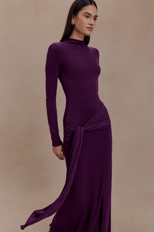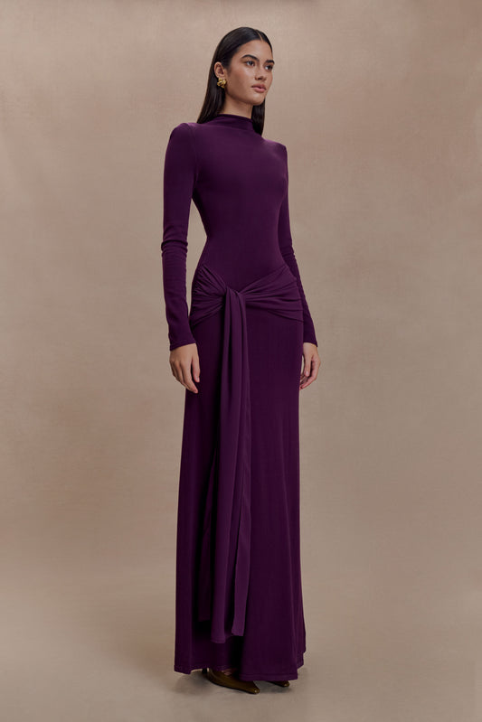 Grayson Knit Chiffon Maxi Dress - Plum