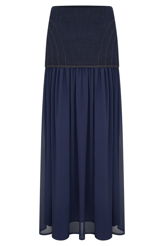 Vivica Slinky Gathered Maxi Skirt - Midnight Navy