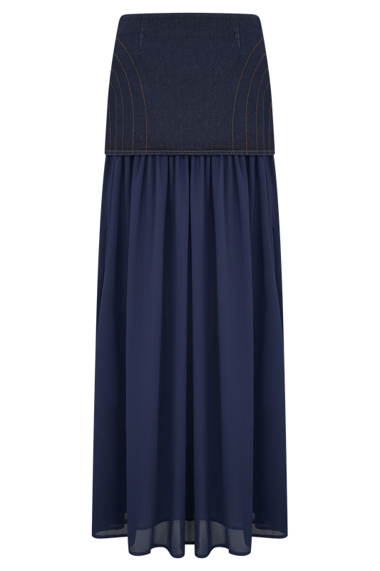 Slinky Gathered Maxi Skirt - Midnight Navy