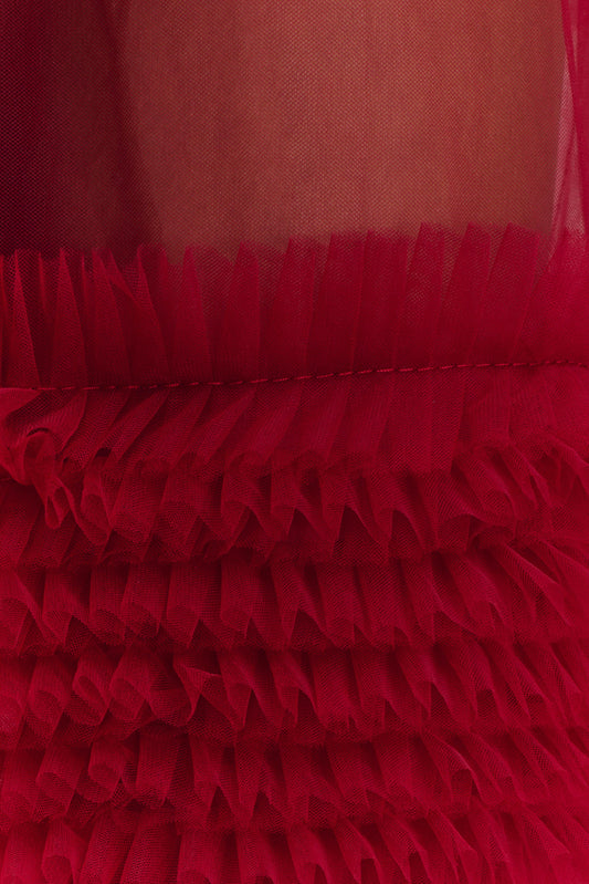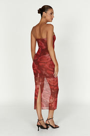 Knotted Mesh Maxi Dress - Red