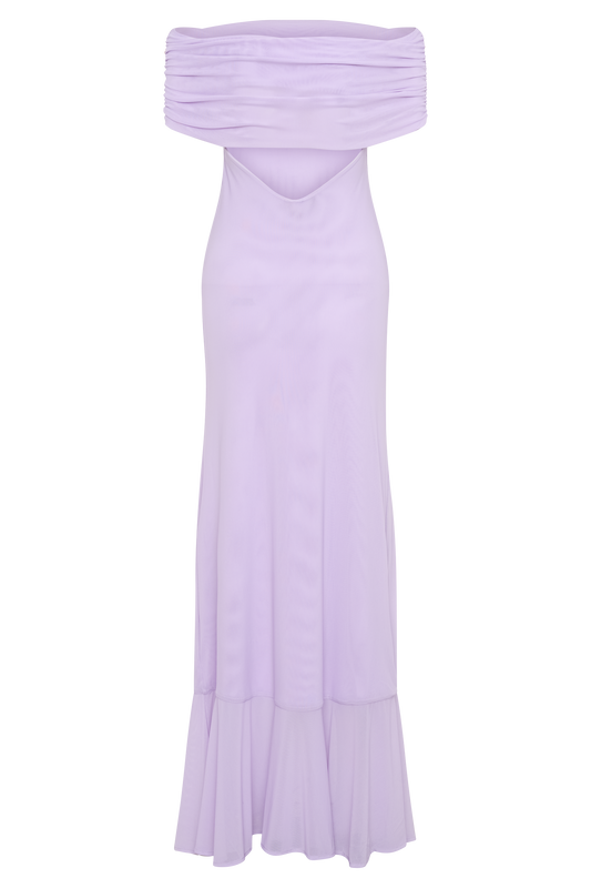 Off Shoulder Mesh Maxi Dress - Lilac