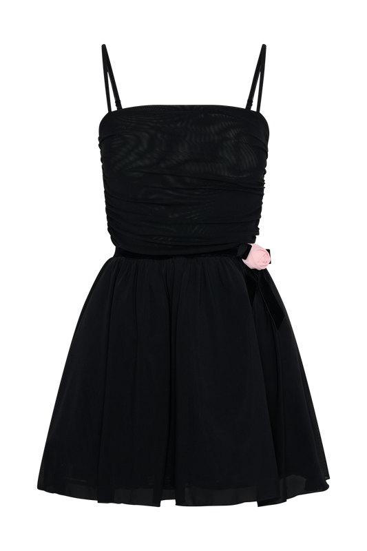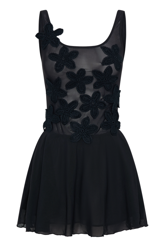 $229-35% Off Sale price $149Unit price / per20% OFF AT CARTMelanie Mesh Mini Dress With Flowers - Black