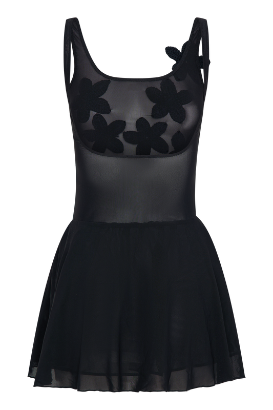 Mesh Mini Dress With Flowers - Black
