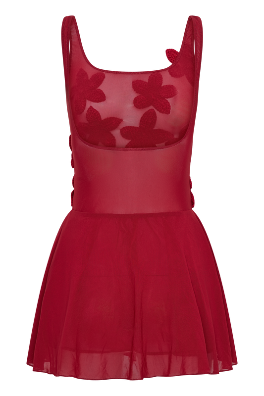 One Shoulder Mesh Mini Dress - Mahogany