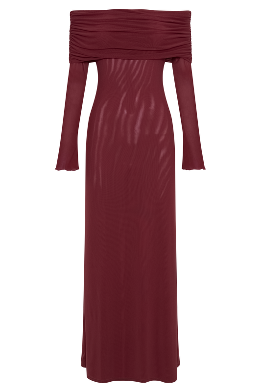 Knotted Mesh Maxi Dress - Mahogany
