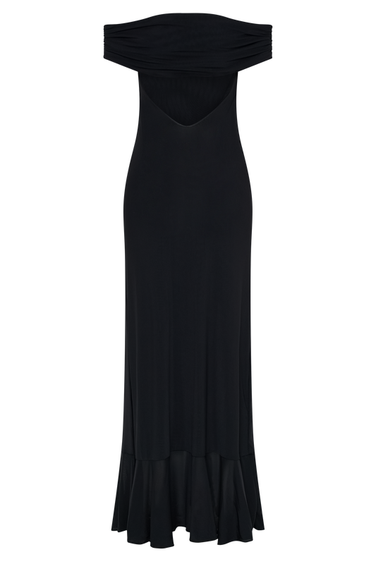 Josie Off Shoulder Mesh Maxi Dress - Black
