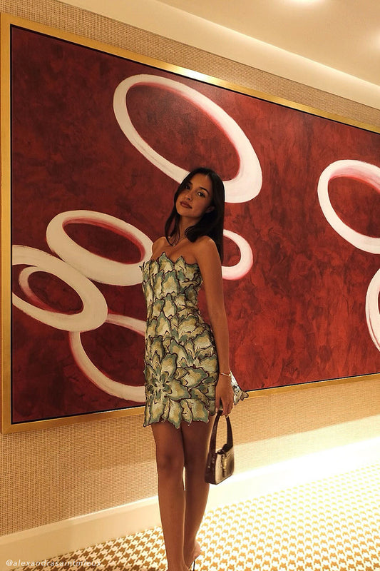 Regular price $999Unit price / perMESHKI AtelierEloise Hand Beaded Mini Dress - Gold Swirl Print