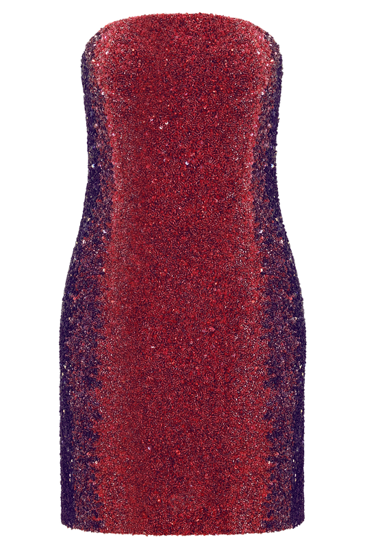 Hand Beaded Strapless Mini Dress - Red Ombre