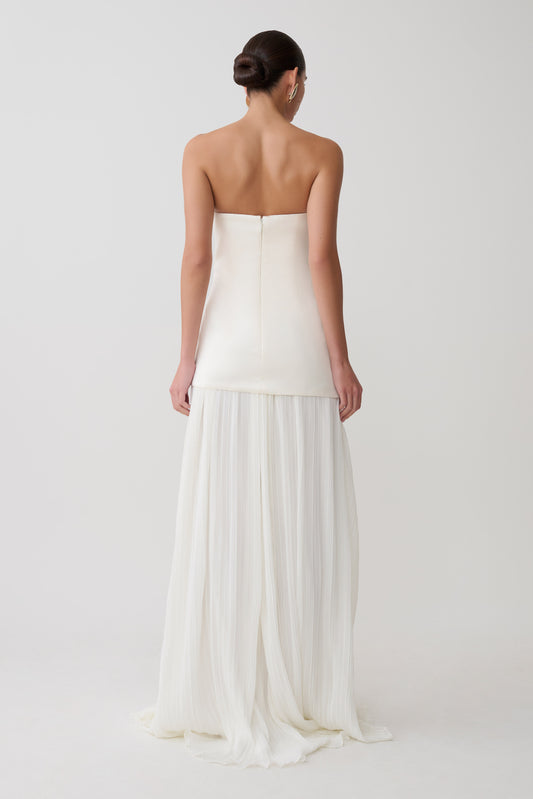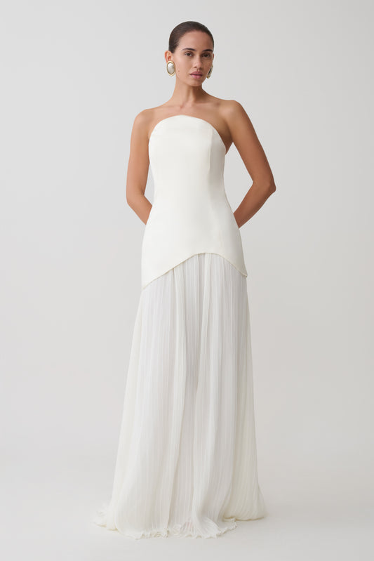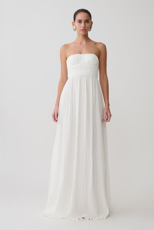 Juno Strapless Pleated Maxi Gown - White