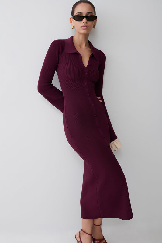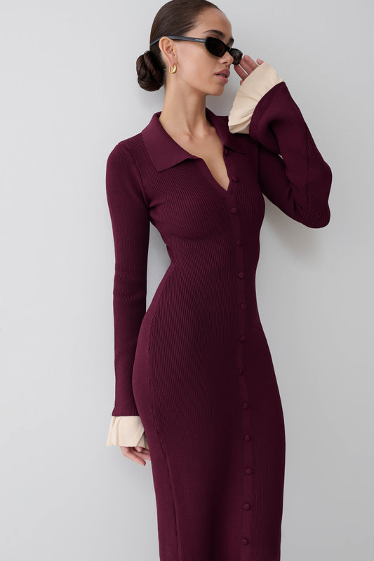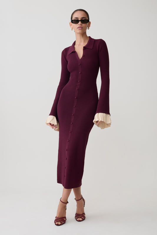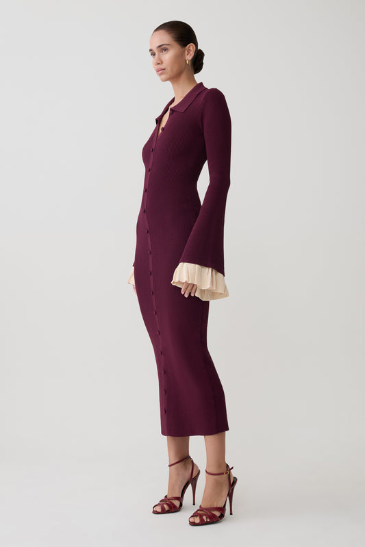 Ruffle Knit Midi Dress - Plum