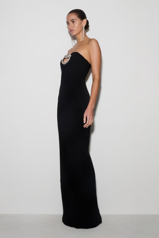 Dalia Off Shoulder Satin Maxi Dress - Black