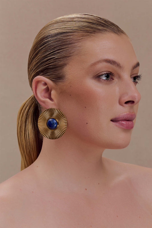 Maisie Round Gemstone Earrings - Gold