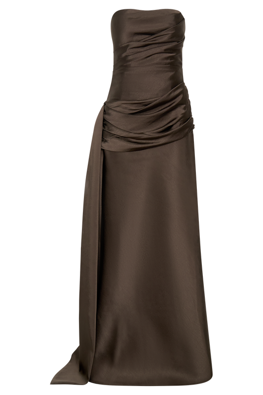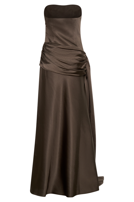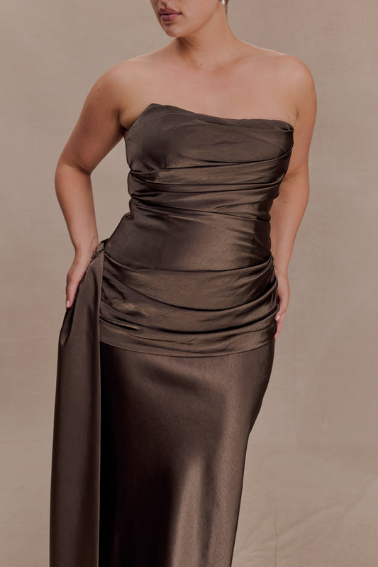 Lyla Asymmetrical Satin Maxi Dress - Bronze Taupe