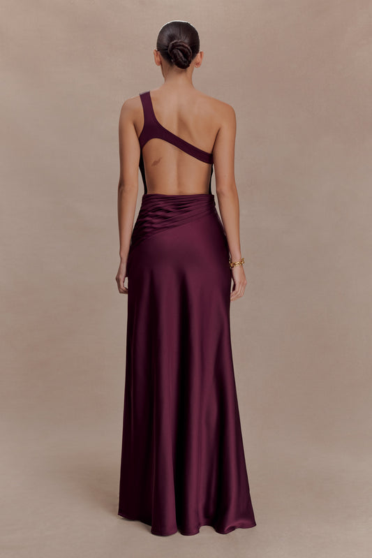 Lyla Asymmetrical Satin Maxi Dress - Plum