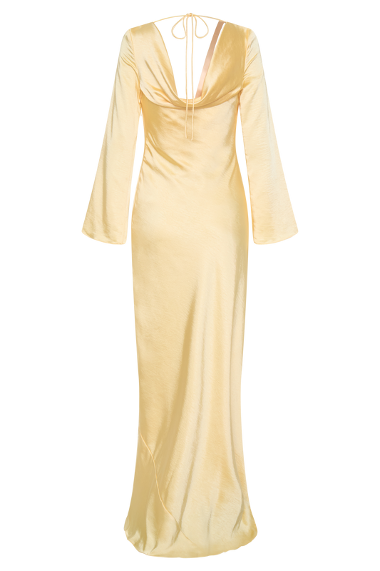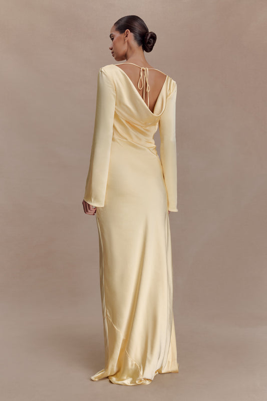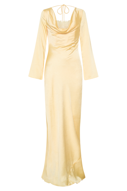 Eliza Long Sleeve Cowl Lace And Satin Maxi Dress - Lemon