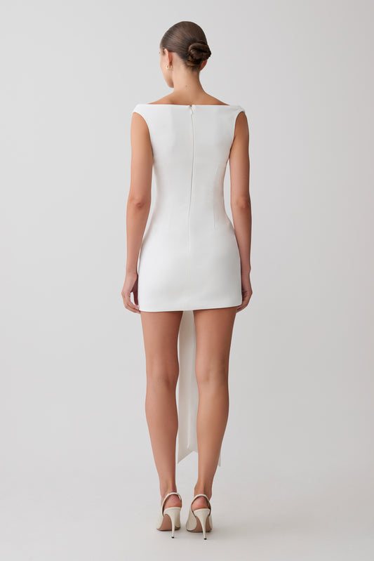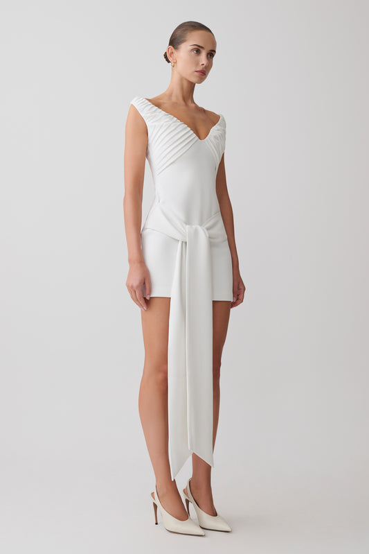 Runa Off Shoulder Mini Dress With Waist Tie - White