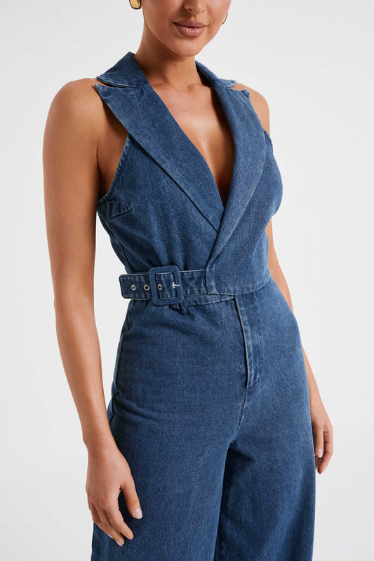 Dayna Denim Halter Top - Indigo Blue