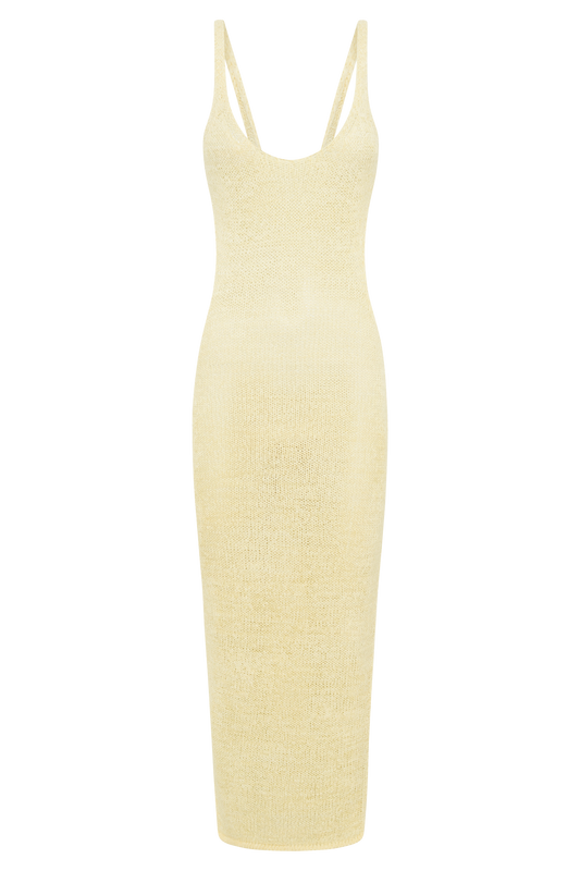 Ovina Halter Neck Knit Midi Dress - Lemon