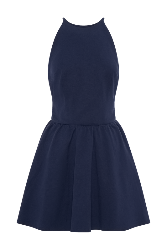 Ruth Cotton Halter Mini Dress - Ocean Blue