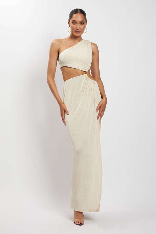 Paige Ruched Side Cut Out Maxi Dress - Nude