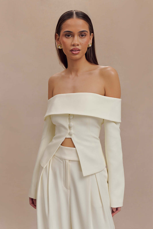 $189-55% Off Sale price $85Unit price / perCelene Off Shoulder Jacket - Ivory