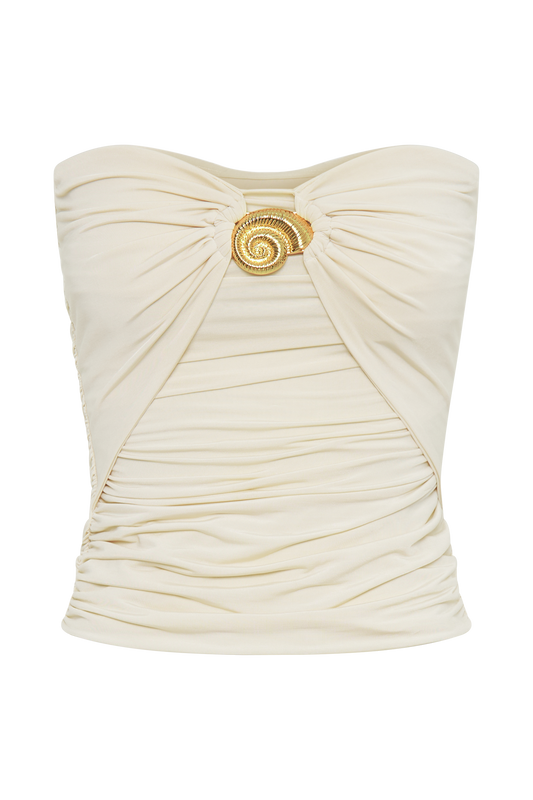 Strapless Slinky Longline Top With Shell Hardware - Ivory