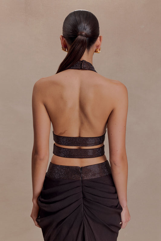 Regular price $199Unit price / perSiren Satin And Diamante Halter Top - Dark Chocolate
