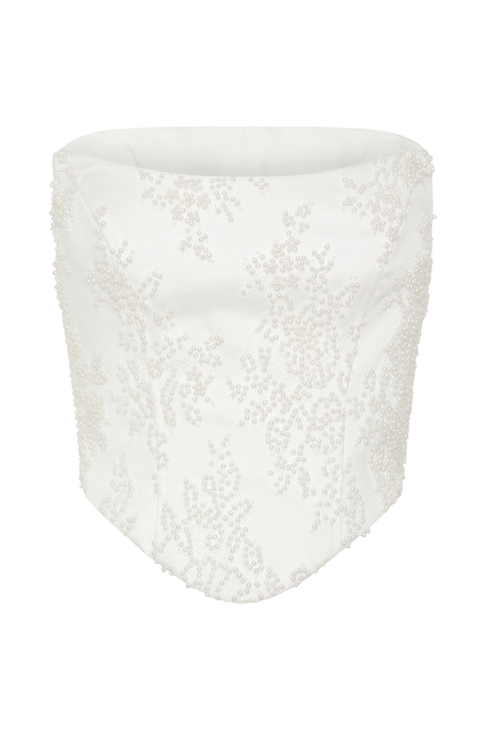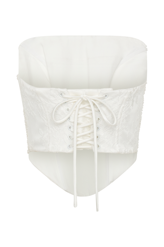 Beaded Satin And Lace Corset Top - Ivory