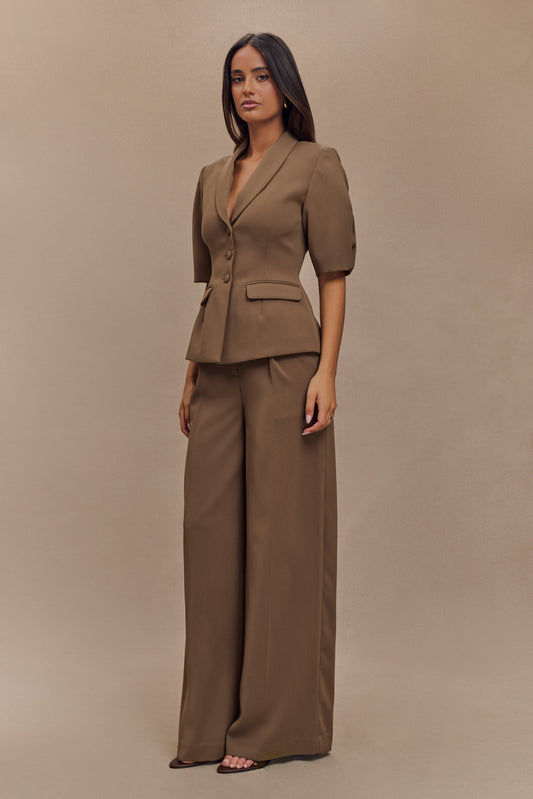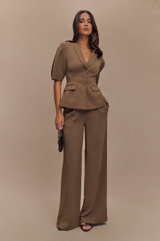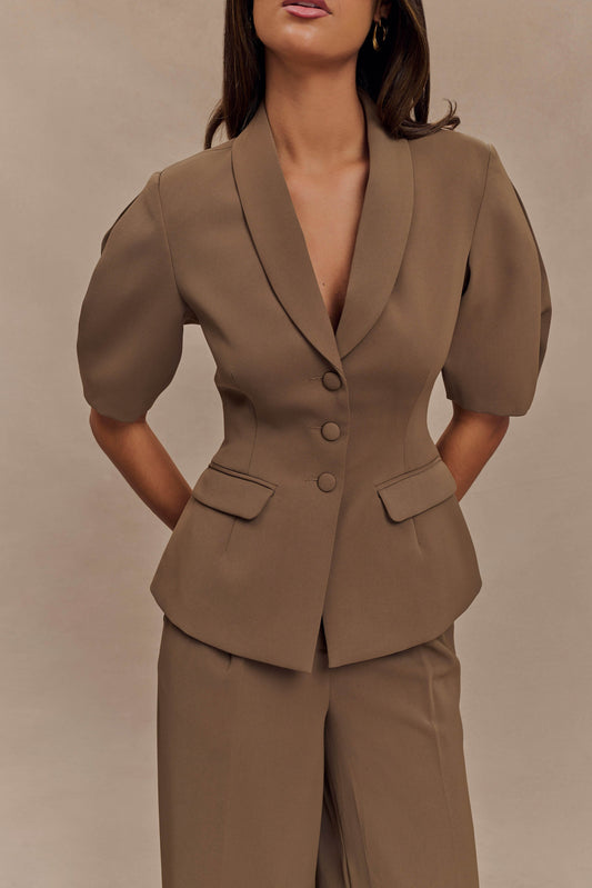 Regular price $169Unit price / perOpal Puff Sleeve Suiting Top - Cacao Brown