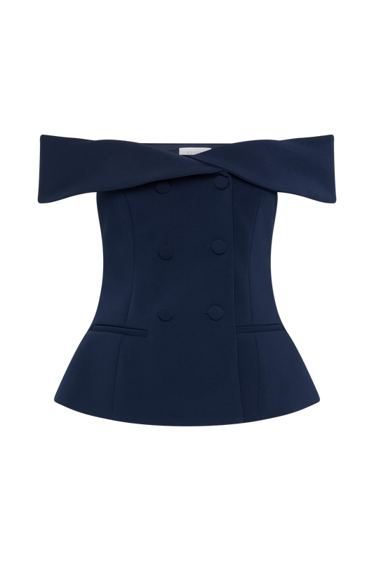 Rayne Off Shoulder Denim Top - Indigo Blue